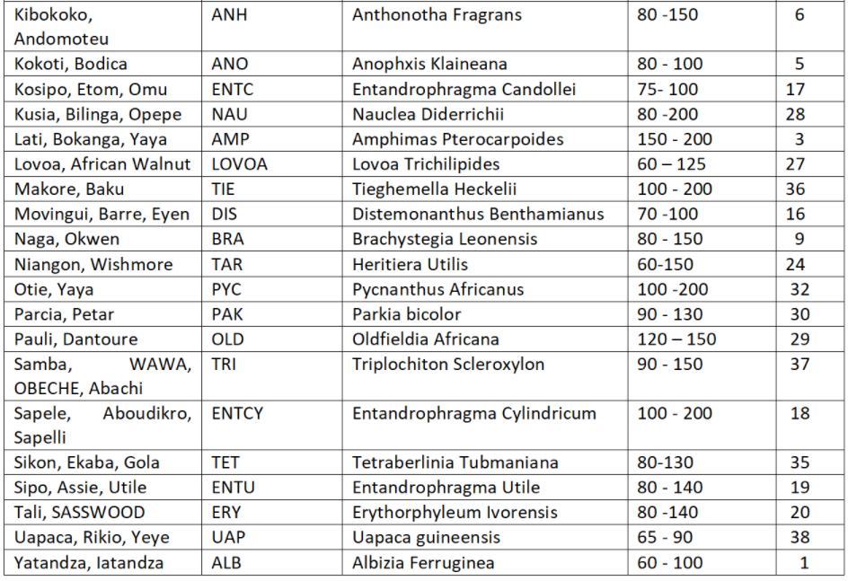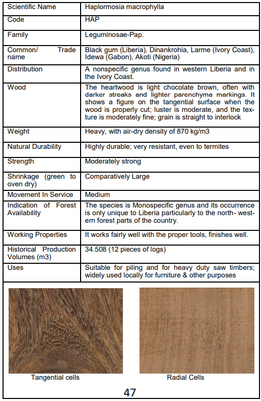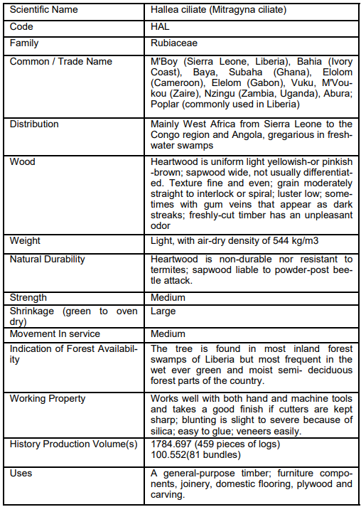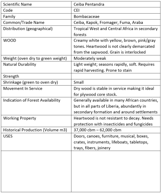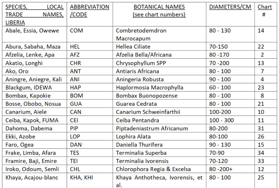 The charts source - National Development Foundation - "The Tropical Timbers of Liberia".